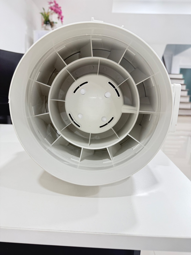 👉 คือพัดลมที่รวมข้อดีของพัดลม Axial (ใบพัดตรง) และ Centrifugal (แรงเหวี่ยง) เข้าด้วยกัน